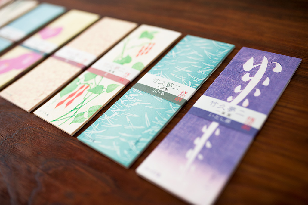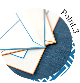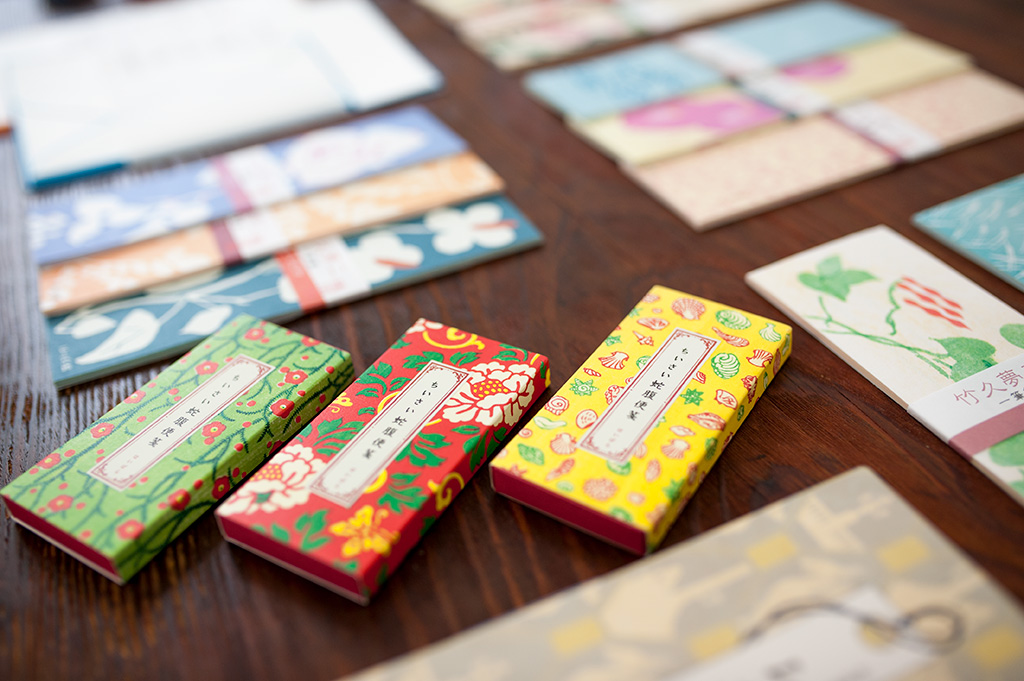 The colored edges of Haibara’s letter sets are hand-painted one by one using the brush-pulling technique. The vivid colors achieved through this hand-printing method highlight the artisans’ dedication and attention to detail, embodying a true spirit of craftsmanship.