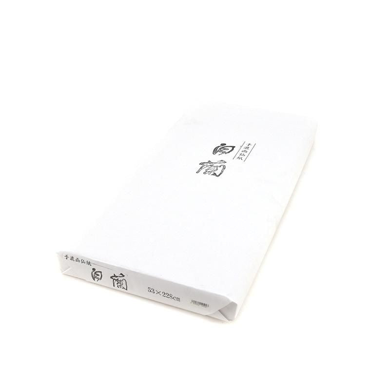 Handmade gashi paper suitable for general kanji. Recommended for those who prefer bleeding. Its soft texture allows for a gentle bleeding effect. The paper's surface is lightly seasoned with chalk, providing excellent brush grip, making it ideal for creative works.