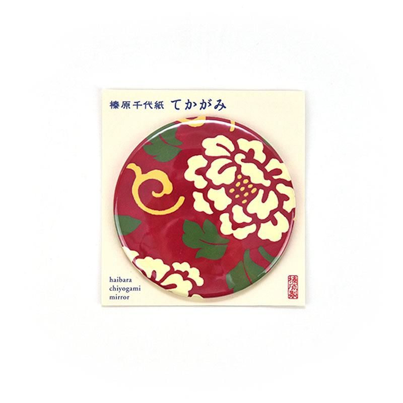 #Washi crafts/#Accessories/#Mirrors/#Peonies/#Reds/#Greens/#Yellows/#Natural/#Haibara Chiyogami/#Haibara